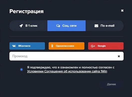 Еще один удобный способ — регистрация через популярные социальные сети. Пользователи могут связать свой профиль 1Win с аккаунтами таких платформ, как Google или VK.