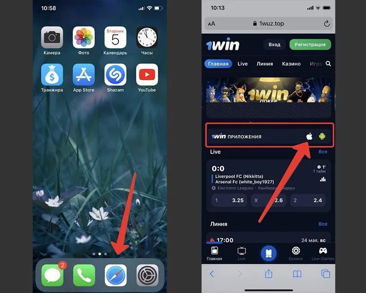 - Перейдите на официальный сайт 1Вин через браузер Safari.